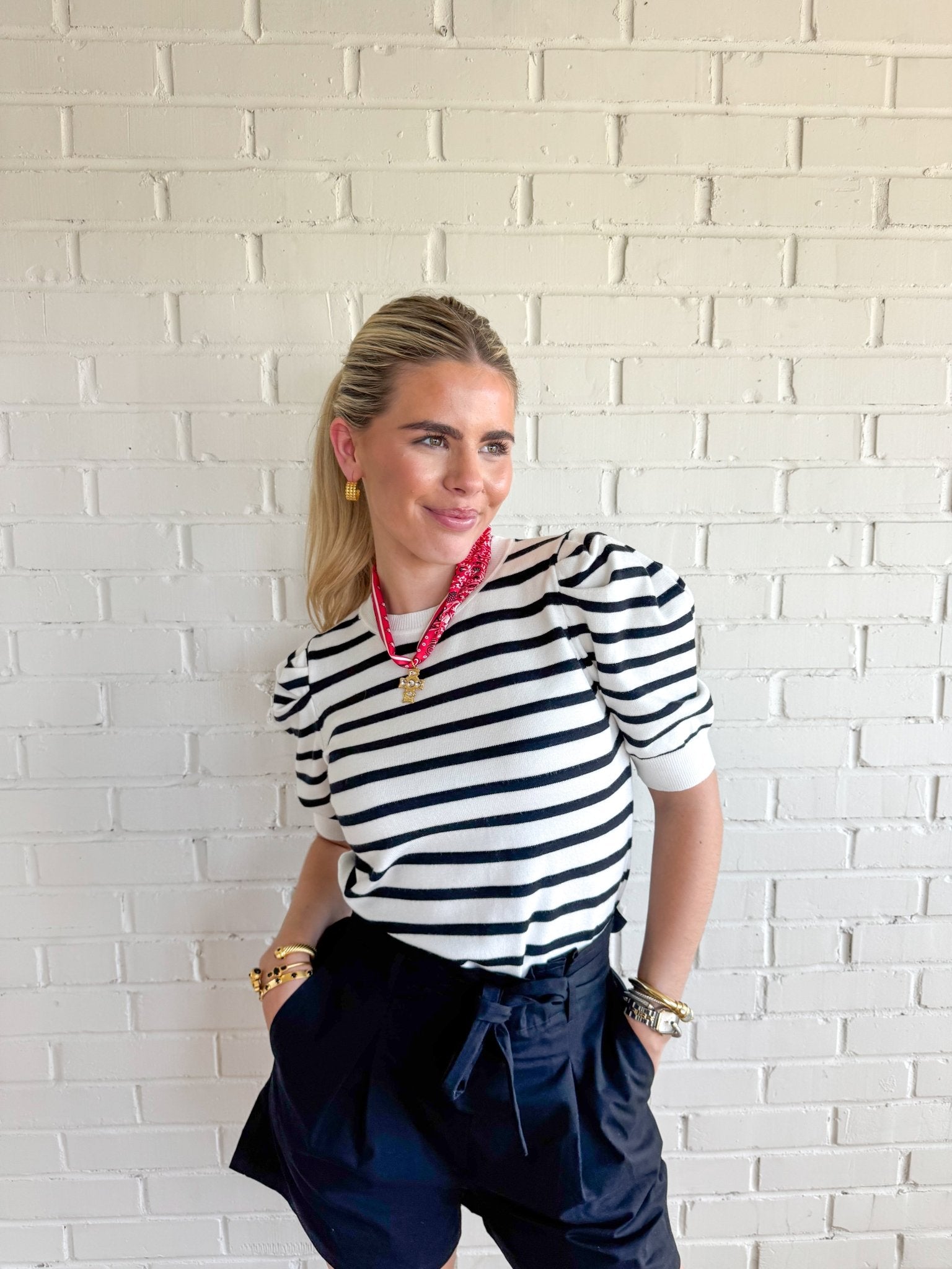 Versatile enough for any occasion, the Striped Game Day Sweater pairs effortlessly with jeans, shorts, or a skirt, offering endless styling options. Wear it casually for a relaxed, sporty look or dress it up with our Blissful Accessories to elevate your outfit for a game day gathering. It’s the perfect combination of laid-back and polished, making it the go-to top for any fan.